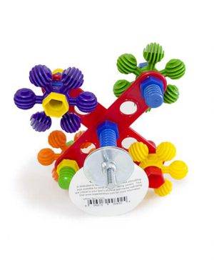Enrich your bird’s life with the Super Bird™ Creations Spin Cycle Medium to Large Bird Toy. Spin Cycle bird toy mounts securely onto the side of the cage. Made of sturdy plastic planks with four spinning flower wheels (one on each end), this toy also moves as a whole on the mounting hardware to entertain your bird with constant motion.