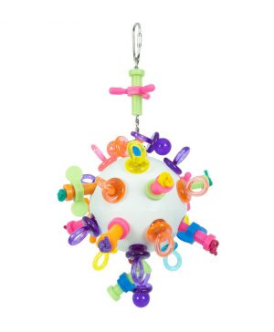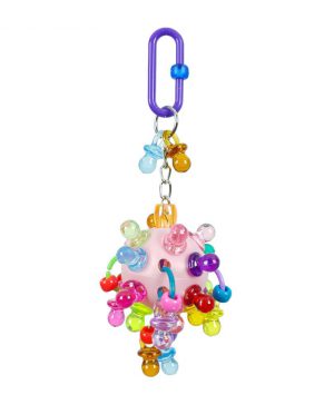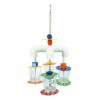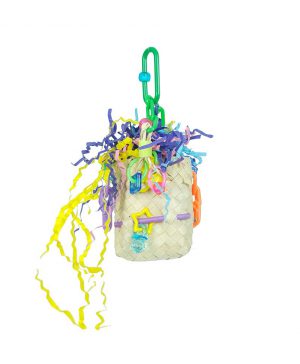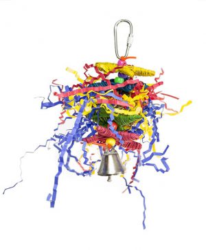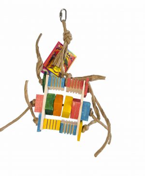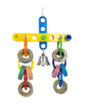 This great toy features an assortment of coloured cardboard bagels which are completely destructible for your bird’s entertainment. As your bird pulls and plays with the cardboard, bells and plastic, it will lean to the side being pulled for a more dynamic and fun experience.