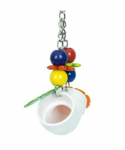 This colourful yet simple foraging toy is a personal favourite to one of our Eclectus and I’m sure yours will love it too! Treats of all sizes can fit inside and is easy to move around the cage. The toy can be made a bit harder by taping the lids down with some bird safe tape.