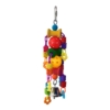 This unique twist on a small bird swing is made from colorful munch balls, balsa slats, a vine stick, leather, plastic chains, pony beads and two bells. It’s the perfect size for Parrotlets, Parakeets, Cockatiels, and Lovebirds.